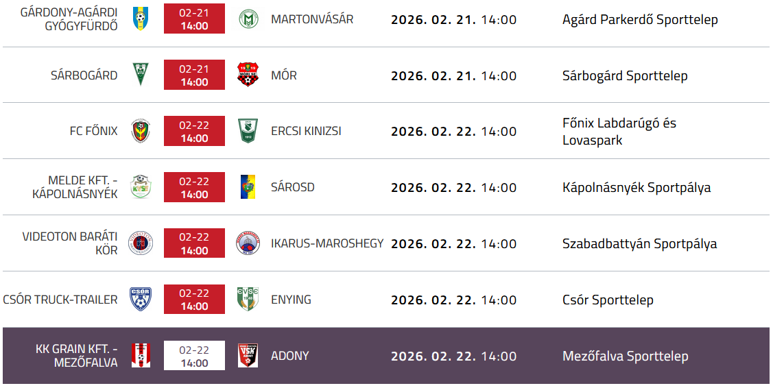 Vármegyei felnőtt I. osztály, 16. forduló: KK Grain Mezőfalva SE - Adony